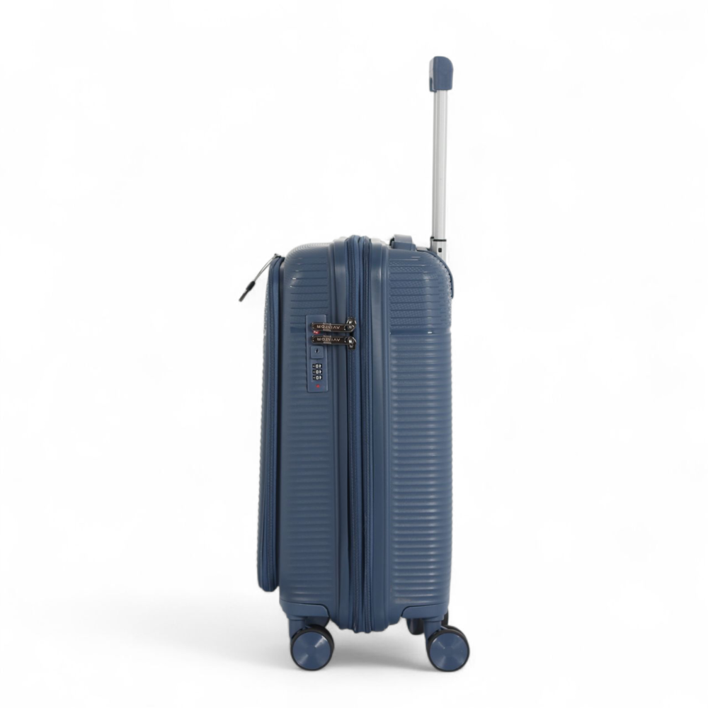 حقيبة سفر مثالية، مصممة خصيصًا لتلبية احتياجات المسافرين بالطائرة. تتميز بالجمع بين المتانة القصوى وخفة الوزن بفضل مادة البروبلين، وتوفر نظام وصول سريع مبتكر لأجهزتك الإلكترونية.
