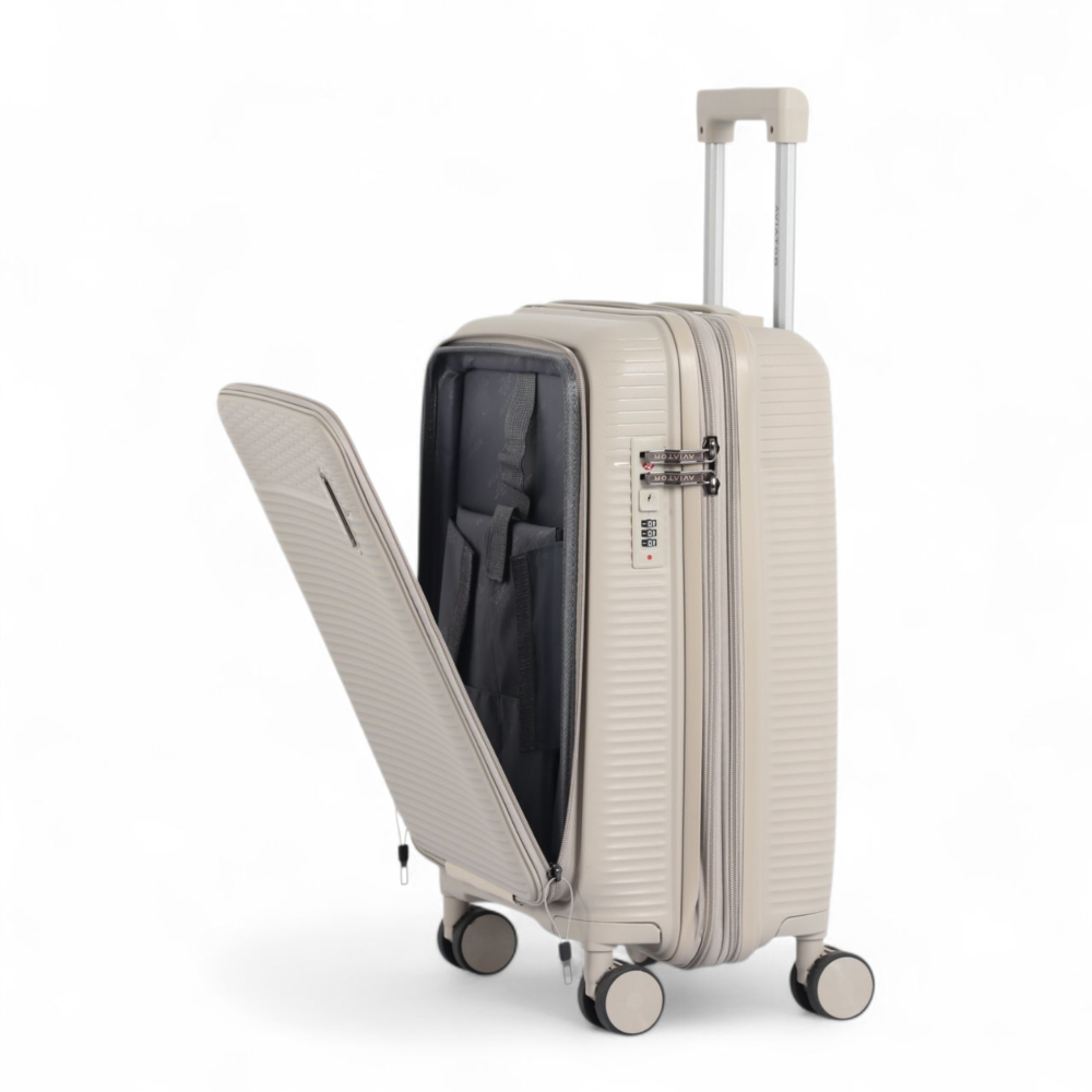 حقيبة سفر مثالية، مصممة خصيصًا لتلبية احتياجات المسافرين بالطائرة. تتميز بالجمع بين المتانة القصوى وخفة الوزن بفضل مادة البروبلين، وتوفر نظام وصول سريع مبتكر لأجهزتك الإلكترونية.