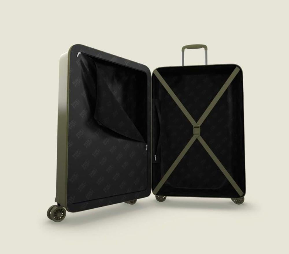 حقيبة سفر أنيقة ومتينة مصنوعة من مادة البولي كربونات، تجمع بين التصميم العصري والوظائف العملية.