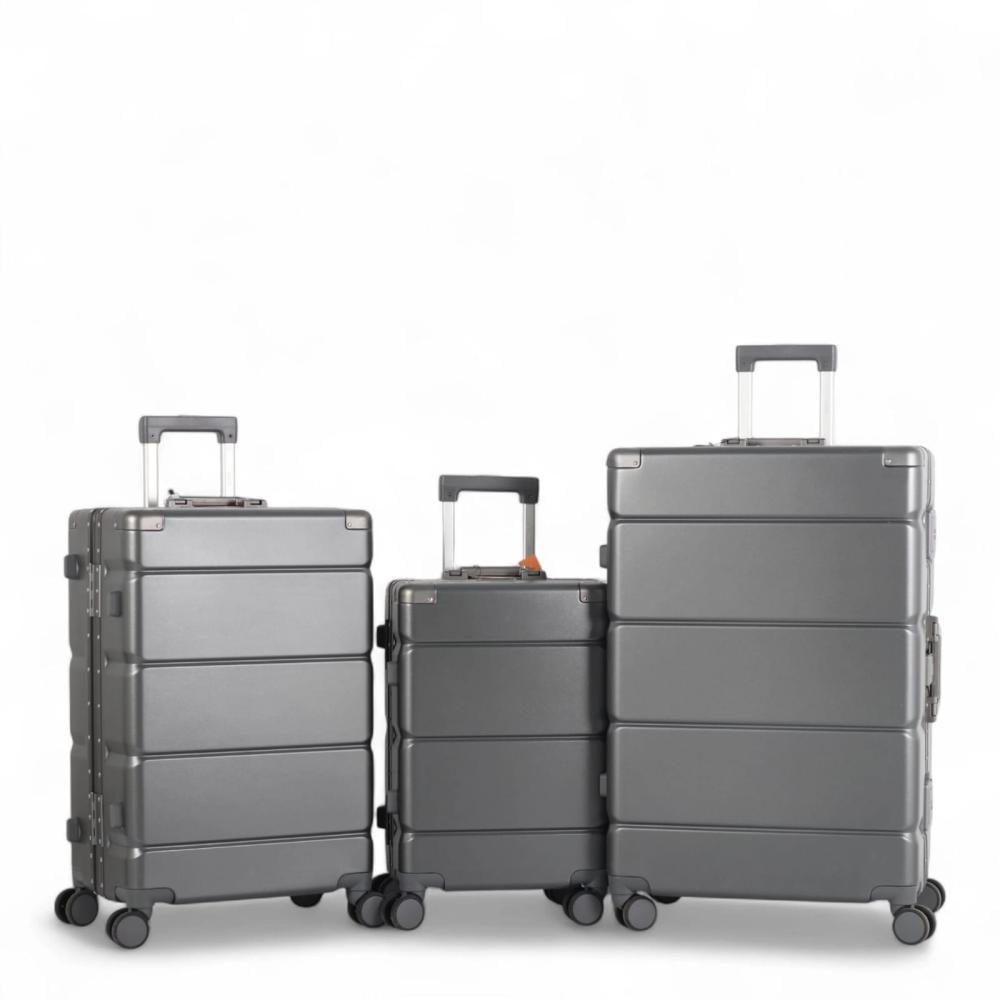 ارتقِ بتجربة سفرك مع طقم حقائب السفر الحصري هذا المصنوع بالكامل من الألومنيوم عالي الجودة،