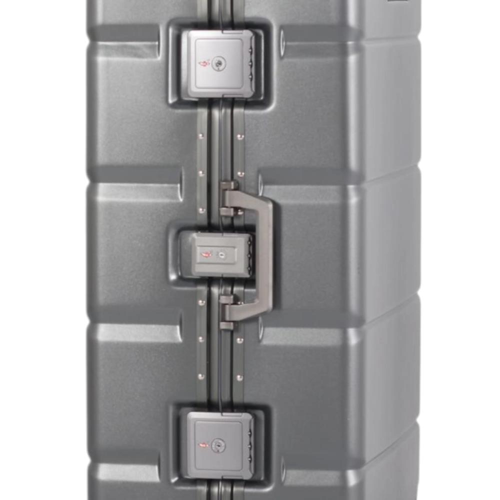 • تصميم فاخر وعصري: تتميز الحقائب بمظهرها المعدني الأنيق والخطوط النظيفة، مما يمنحها إحساسًا بالفخامة والرقي، ويجعلها تبرز في أي مطار.