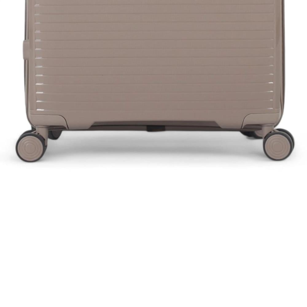• عجلات مزدوجة دوارة 360 درجة وصامتة: مزودة بعجلات مزدوجة فائقة الجودة، تتيح دورانًا كاملاً وسلاسة فائقة في الحركة بزاوية 360 درجة. تتميز هذه العجلات بكونها صامتة، مما يضمن تجربة سحب هادئة ومريحة في المطارات والأماكن المزدحمة.