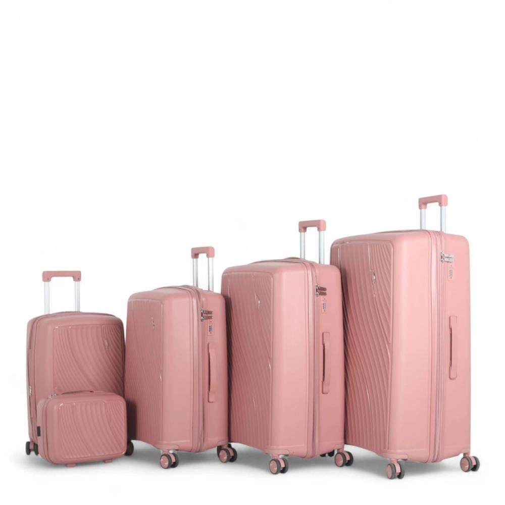طقم حقائب سفر فاخرة ومتكاملة - 5 قطع من البولي بروبلين المقاوم للكسر (مقاسات كبيرة وميزات فائقة)