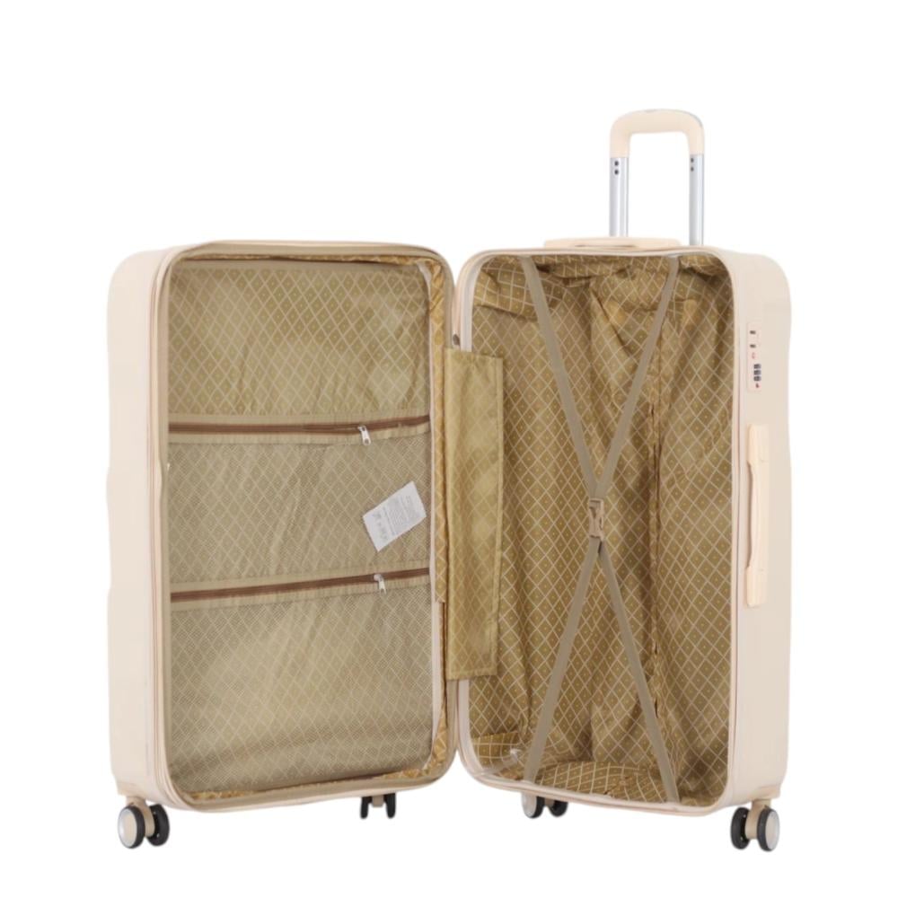 طقم حقائب سفر مكون من 4 قطع يشمل حقيبة يد - بكفرات دبل ومرنة - بالاضافة الى سحاب توسعه وقفل رقمي ثابت