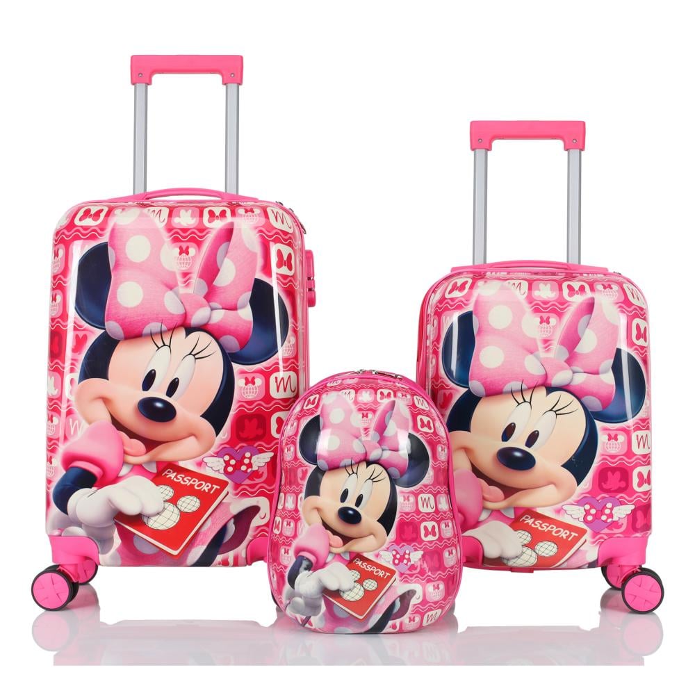 • أضيفي لمسة من البهجة لرحلات طفلتك مع طقم شنط ميني ماوس للأطفال المكوّن من 3 قطع عملية بتصميم كرتوني مميز. مصنوع من خامة PC بولي كربونات عالية الجودة وخفيفة الوزن ليجمع بين المتانة والراحة.