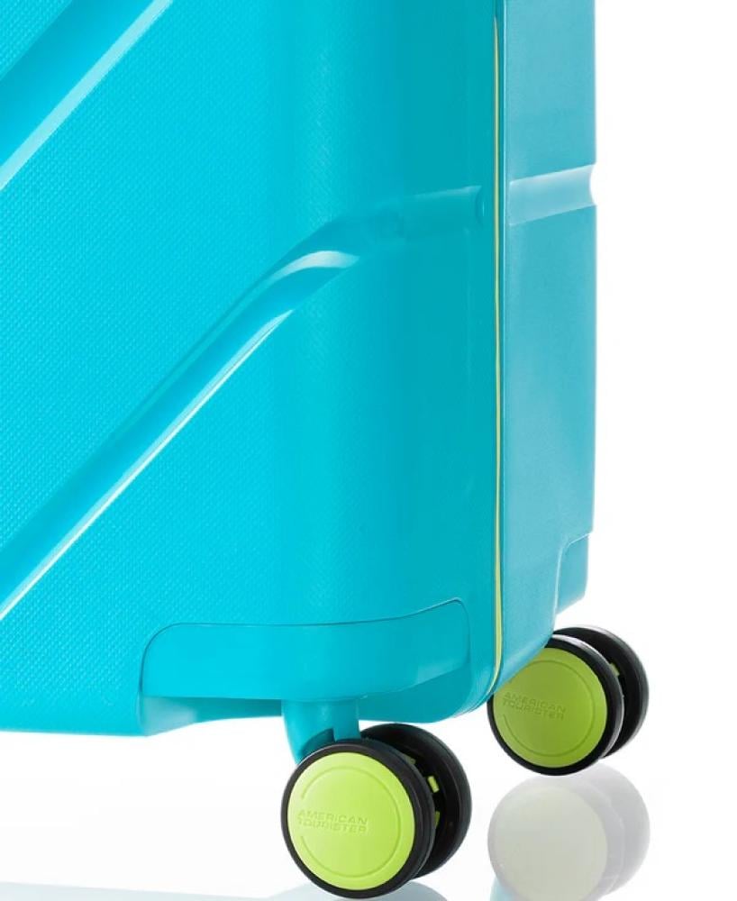 طقم شنط سفر امريكان توريستر ضد الكسر - مكون من 3 قطع - كواترو - بكفرات دبل 360 درجة - وقفل عالمي ثابت ضد السرقة