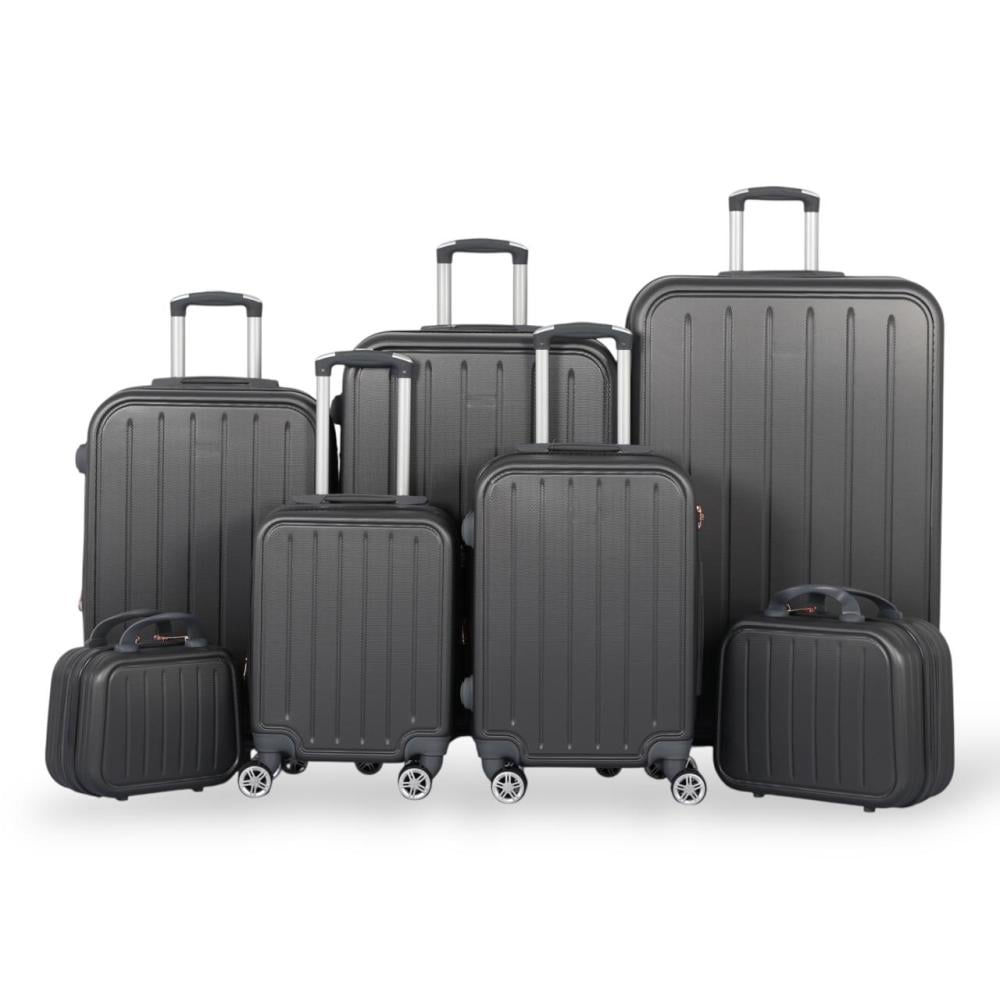 1. التركيب والمقاسات (7 قطع) الطقم مُصمم لتغطية كافة احتياجات السفر، من رحلات العمل القصيرة إلى السفر العائلي الطويل: