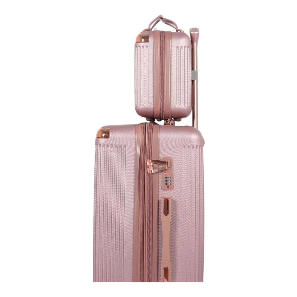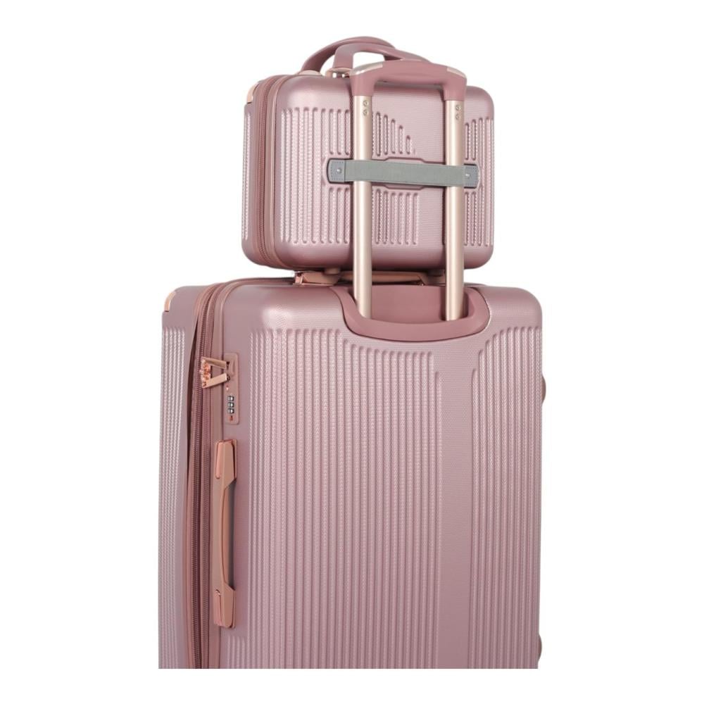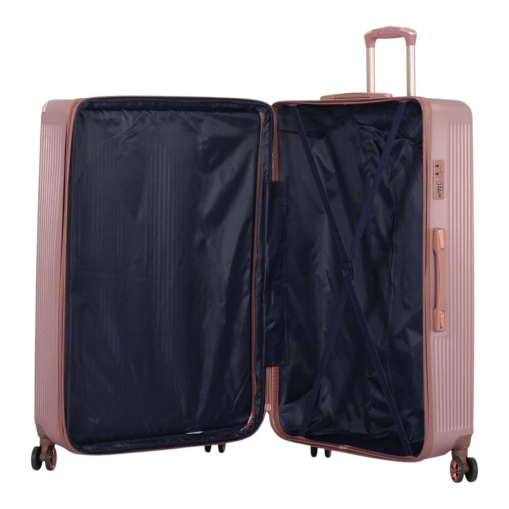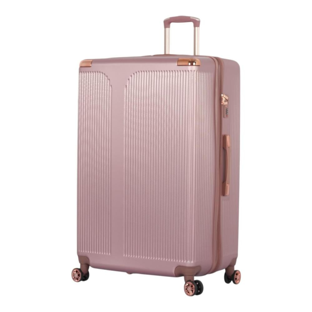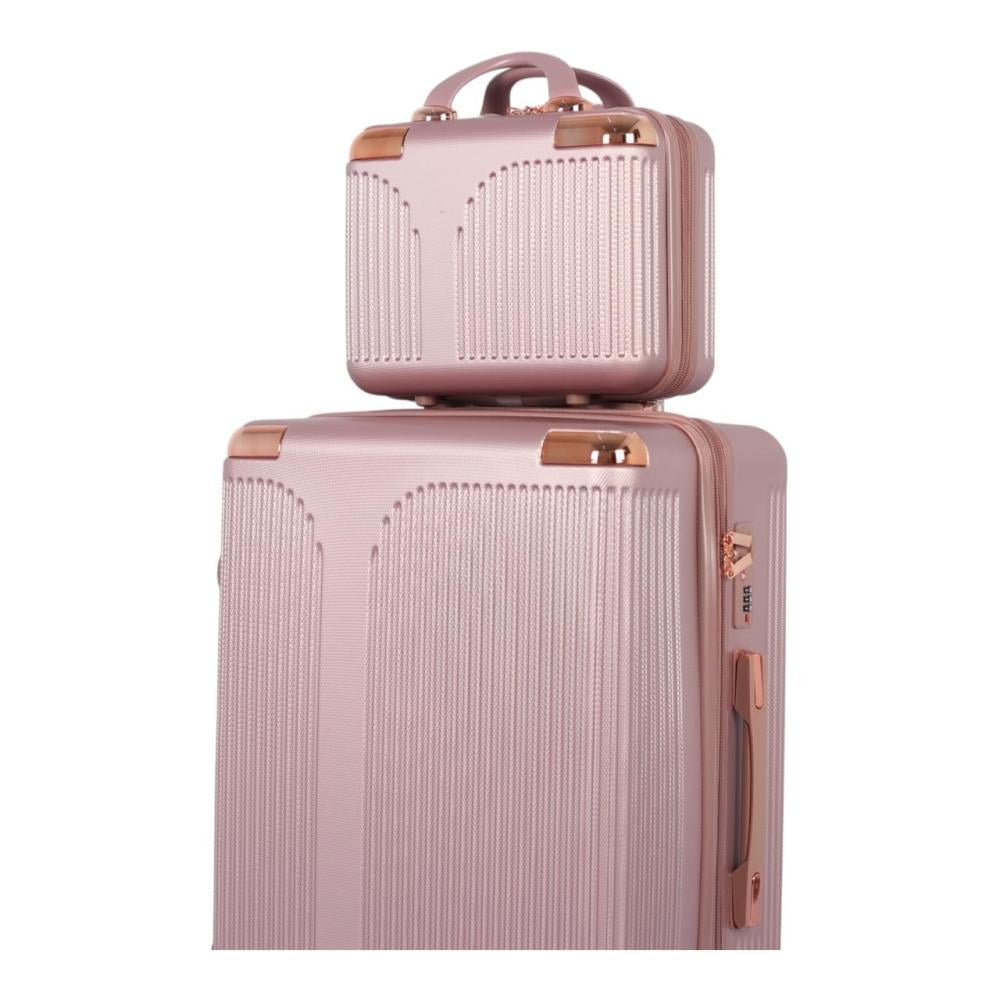 • التصميم: نقش مميز على هيكل الحقيبة (كما هو ظاهر في الصورة)، مع تفاصيل باللون النحاسي/الوردي الذهبي على المقابض والعجلات لإضفاء لمسة جمالية فاخرة.