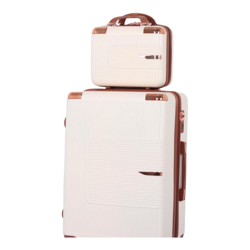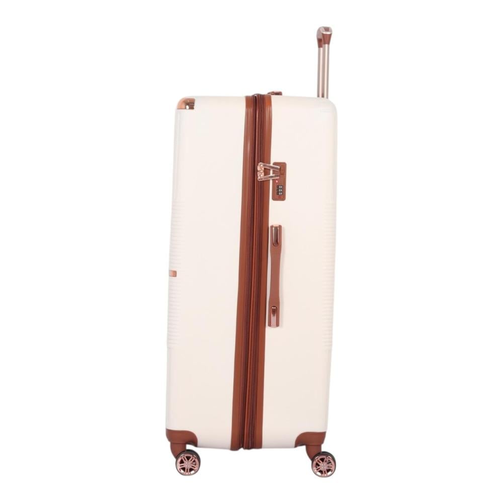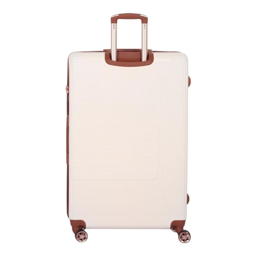 • التصميم: نقش مميز على هيكل الحقيبة (كما هو ظاهر في الصورة)، مع تفاصيل باللون النحاسي/الوردي الذهبي على المقابض والعجلات لإضفاء لمسة جمالية فاخرة.