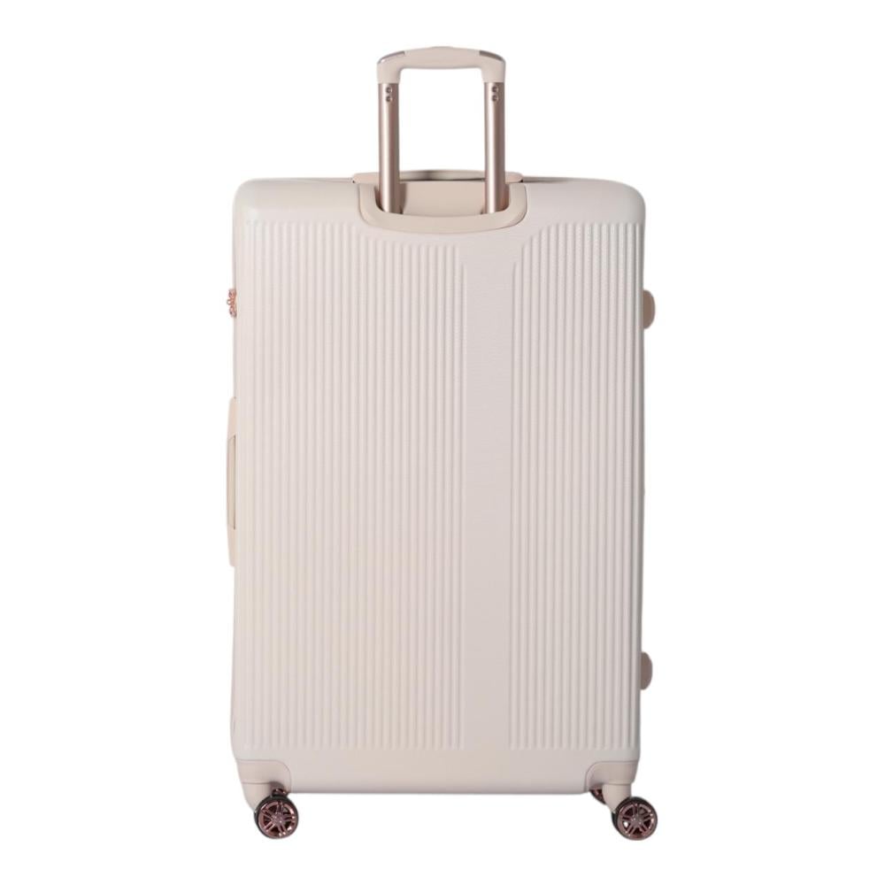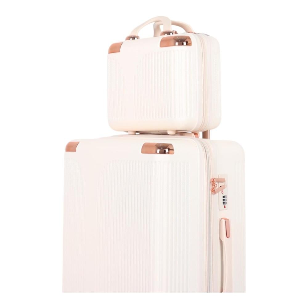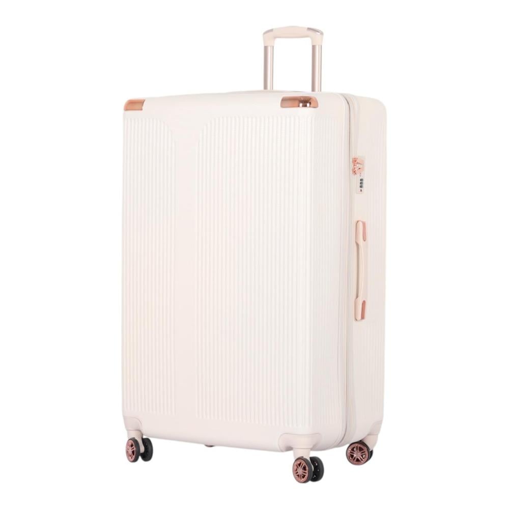 • التصميم: نقش مميز على هيكل الحقيبة (كما هو ظاهر في الصورة)، مع تفاصيل باللون النحاسي/الوردي الذهبي على المقابض والعجلات لإضفاء لمسة جمالية فاخرة.