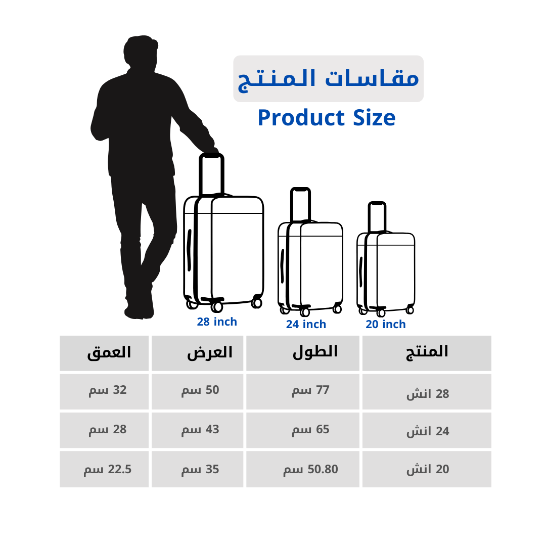 طقم شنط سفر ضد الكسر من خامة البولي بروبيلين مكون من 3 قطع بدبل كفرات - ضمان 2 سنه شامل الكسر