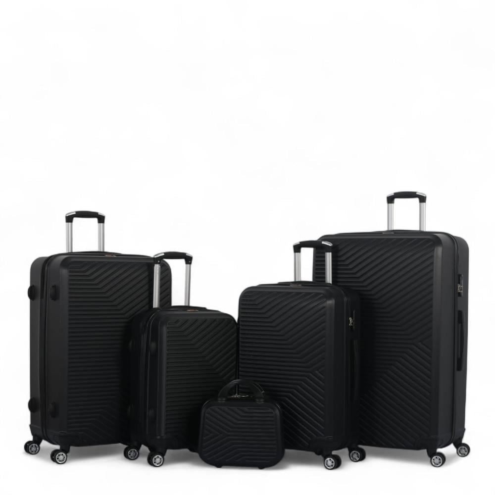 استعد لرحلاتك بأناقة وراحة مع هذا الطقم المتكامل المكون من 5 حقائب سفر بأحجام مختلفة، مصنوعة من مادة ABS الصلبة المتينة لحماية مقتنياتك الثمينة.