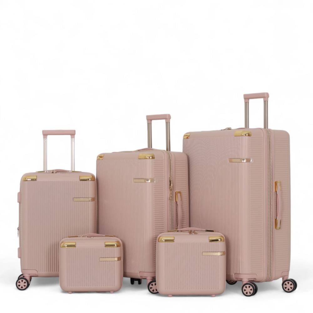 طقم شنط 5 قطع يشمل 3 شنط تروللي وشنطتين للمكياج -بكفرات دبل -وسحاب توسعه- من ماركة NUESS