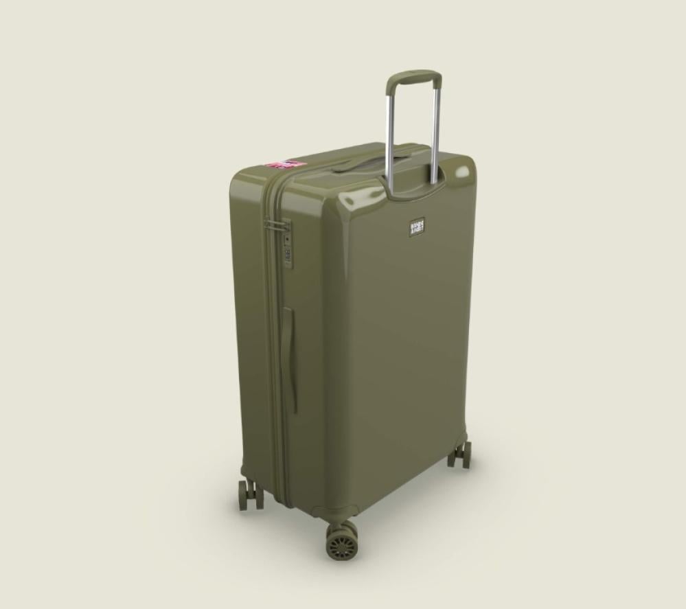 حقيبة سفر أنيقة ومتينة مصنوعة من مادة البولي كربونات، تجمع بين التصميم العصري والوظائف العملية.