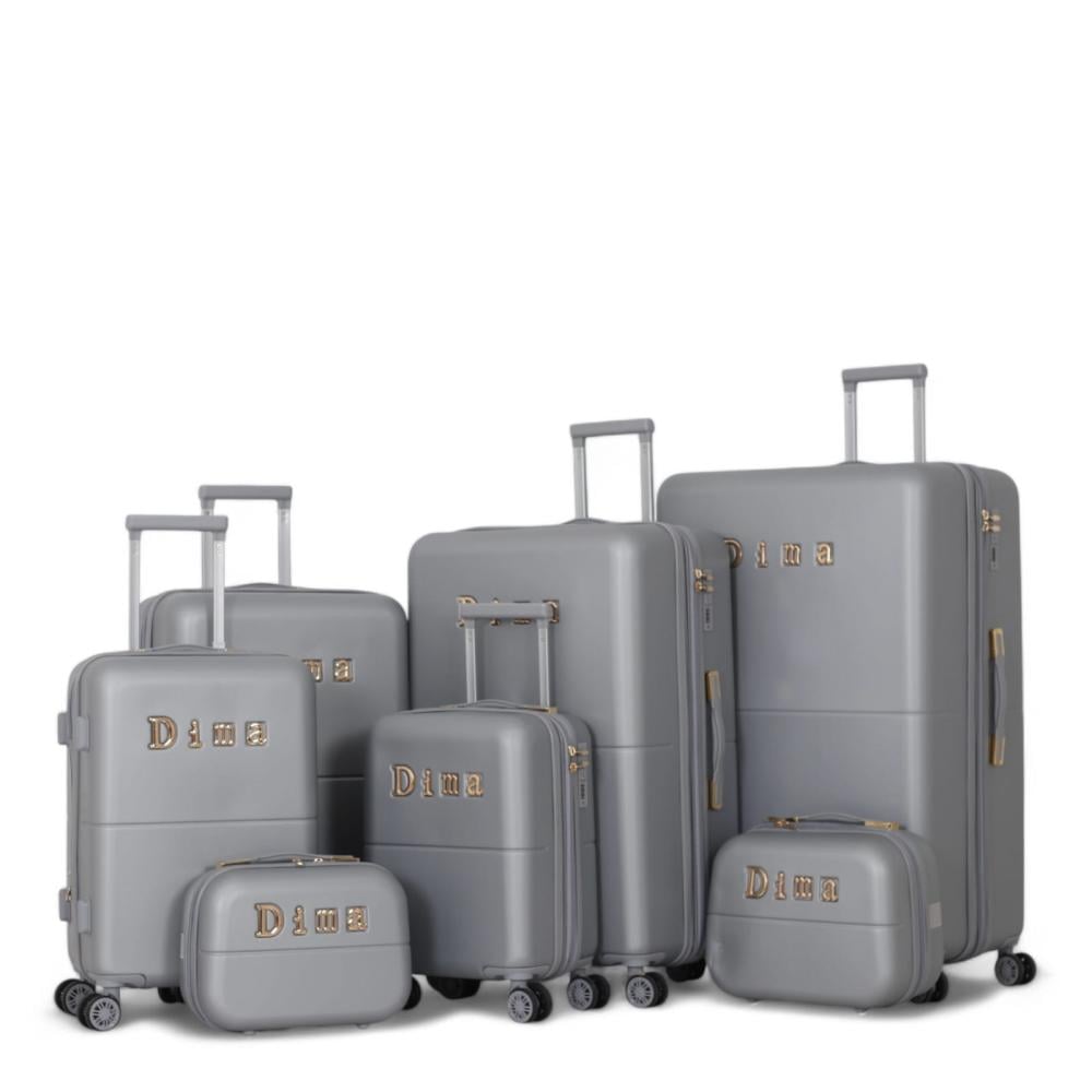 طقم حقائب دبش عروسة - مكون من 7 قطع يشمل 5 شنط تروللي وشنطتين للمكياج -بكفرات دبل -وسحاب توسعه - ماركة dima