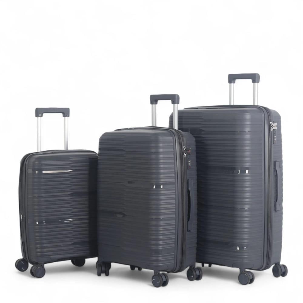 طقم حقائب سفر فاخرة ومتكاملة - 3 قطع من البولي بروبلين المقاوم للكسر (مقاسات كبيرة وميزات فائقة)