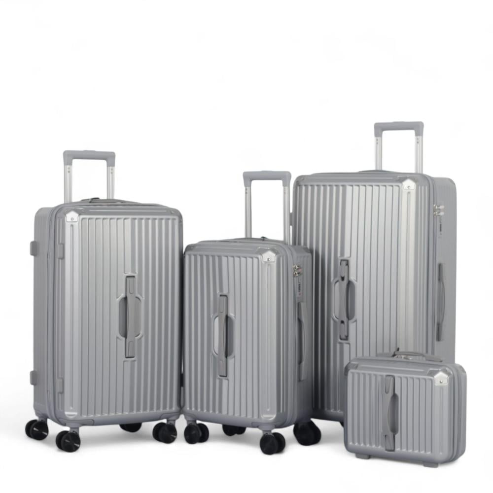طقم حقائب سفر فاخر - مكون من ثلاث حقائب ترولي وحقيبة يد إضافية. صُمم هذا الطقم ليلبي جميع احتياجاتك، من الرحلات الطويلة إلى العطلات القصيرة،