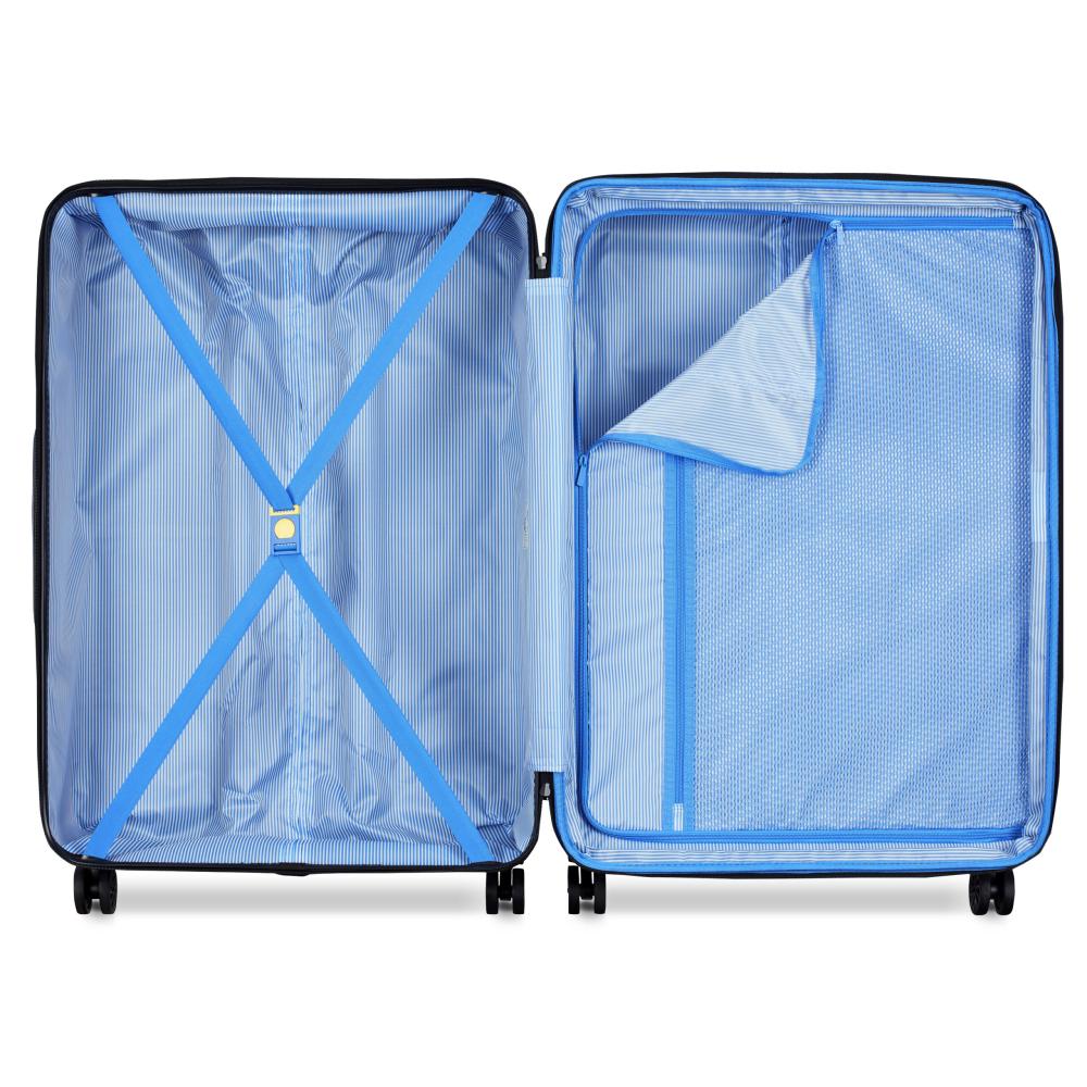مزودة بفتحة رئيسية بسحاب يمكن إضافة قفل إليها. تضمن بطانتها المصنوعة من البوليستر راحة الاستخدام. المقابض العلوية والجانبية تجعل حملها ونقلها في القطارات والطائرات سهلاً وسريعًا. بفضل أحزمة الأمان الداخلية والفاصل الشبكي المزود بسحاب، والذي يوفر حجرتين منفصلتين، تحافظ هذه المجموعة من الحقائب على تنظيم أمتعتك بشكل مثالي وفصلها.