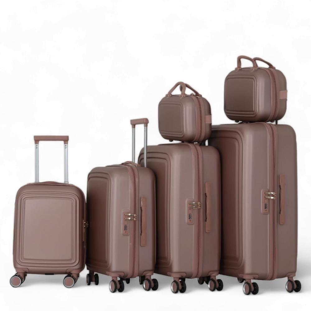 طقم شنط سفر دبش عروسة - مكون من 6 قطع يشمل 4 شنط تروللي وشنطتين للمكياج بكفرات 360 درجه - ماركة RED SEA