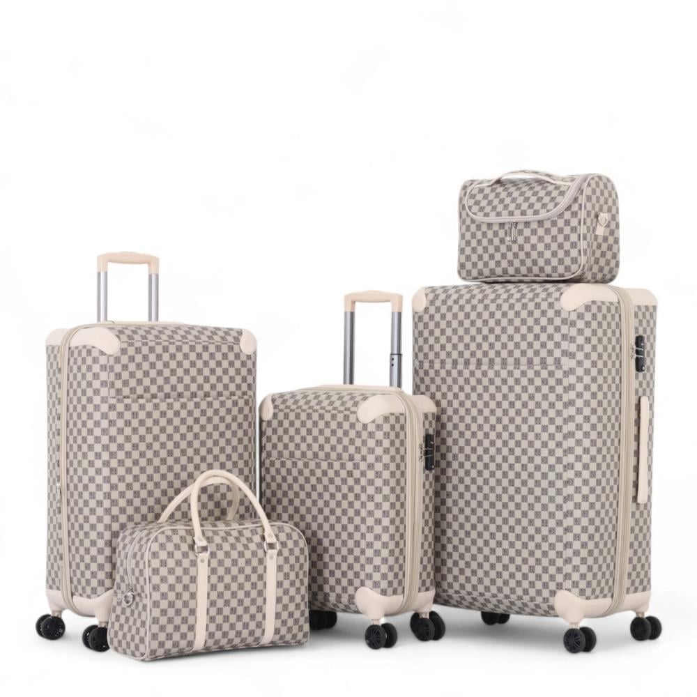 طقم شنط سفر أنيق وعصري - مكون من 5 قطع ويشمل 3 شنط ترولي وحقيبتين يد - مصنوع من البولي بروبلين مغطى بالجلد عالي الجودة - مصمم لتلبية احتياجاتك في السفر بكل راحة وأناقة