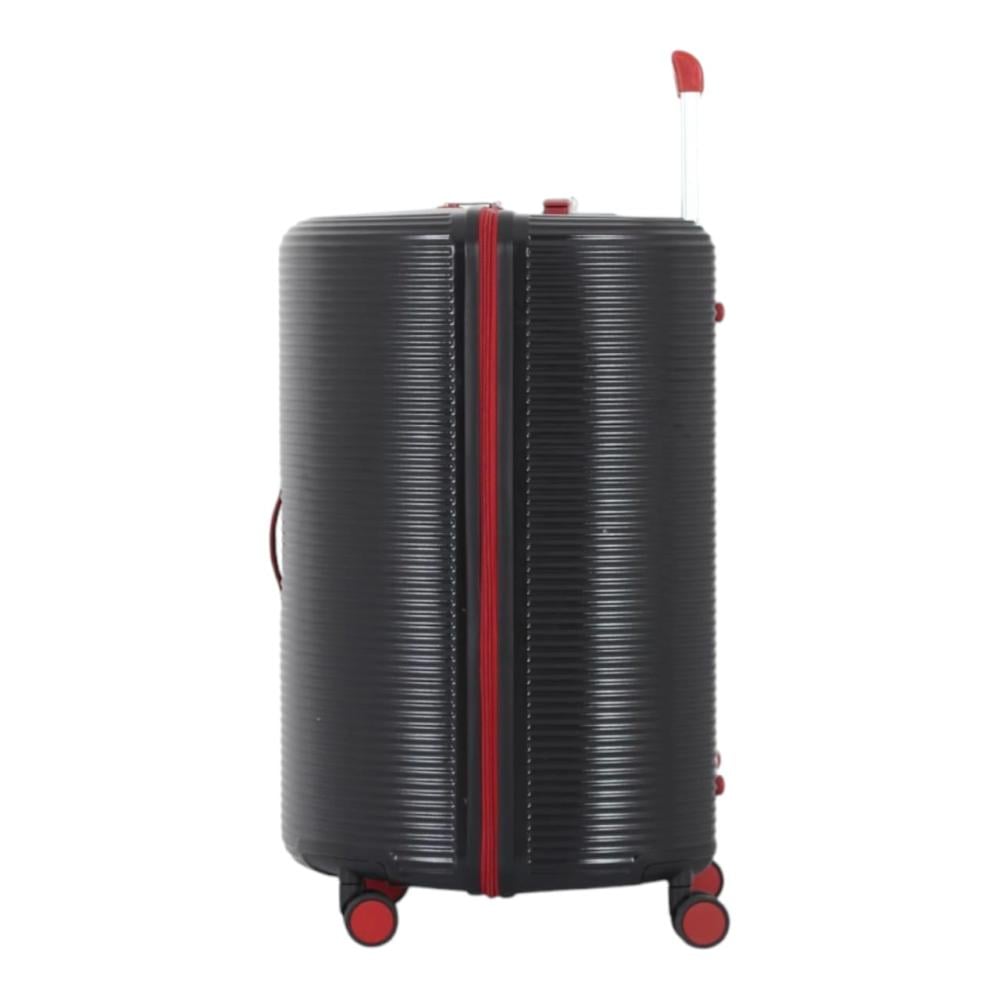 طقم شنط سفر فايبر بتصميم أسطواني مبتكر ومقاوم للماء بكفرات دبل ودوارة 360 درجة مزود بقفل tsa عالمي - اللون اسود