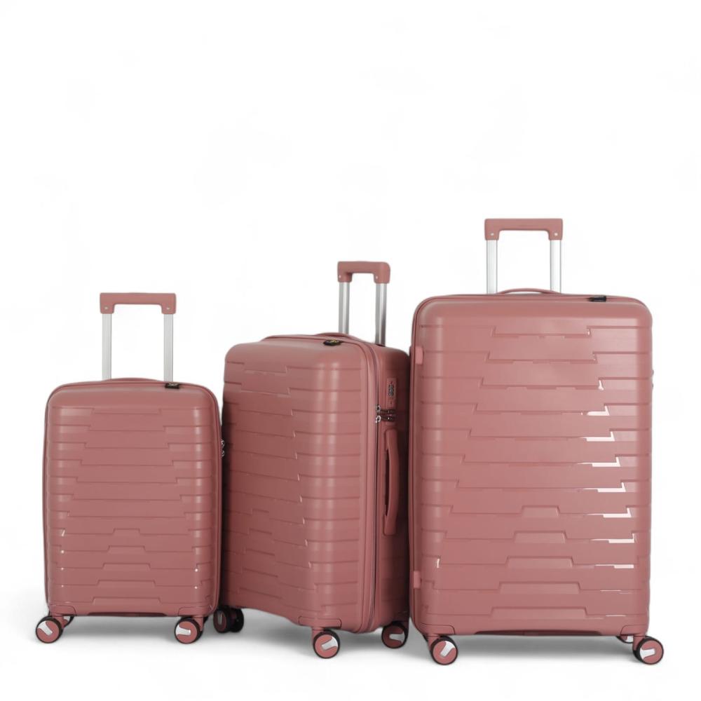 طقم شنط سفر - مصنوعه من مادة البولي بروبلين - ضد الكسر - كفرات دبل 360 درجة - مكون من 3 شنط سفر بمقاسات مختلفة